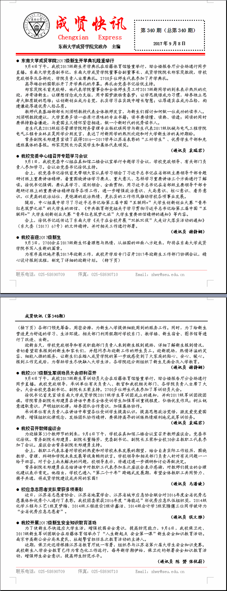 成贤快讯 第340期(总第340期) 2017年09月08日