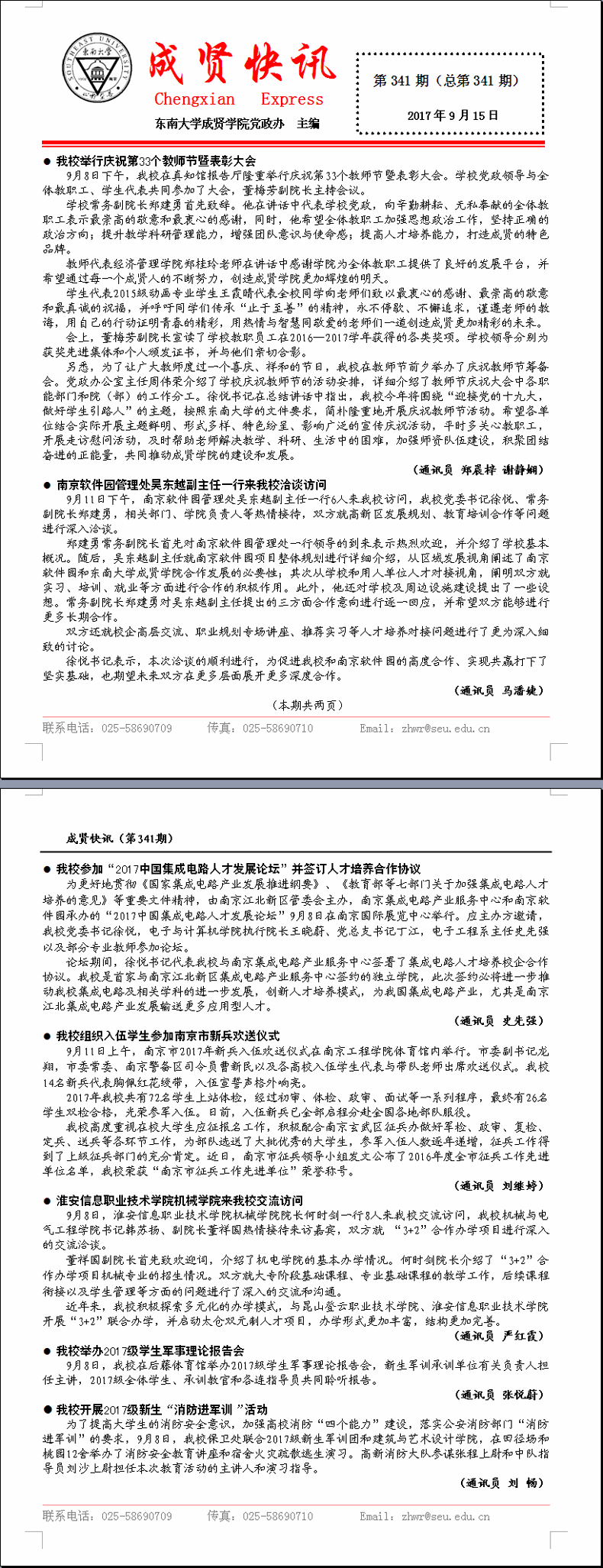 成贤快讯 第341期(总第341期) 2017年09月15日