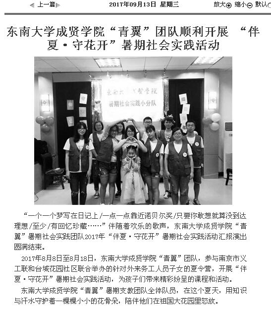 【扬子晚报】云鼎国际4118welcome“青翼”团队顺利开展“伴夏·守花开”暑期社会实践活动