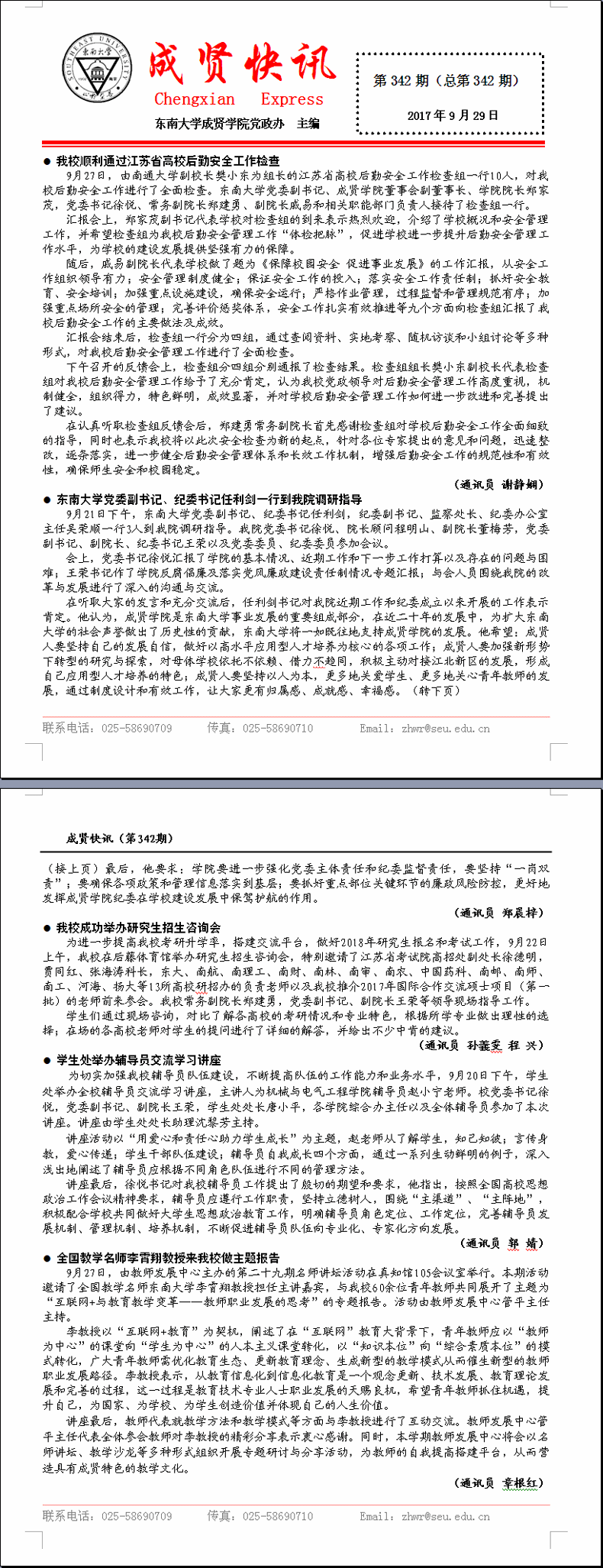 成贤快讯 第342期(总第342期) 2017年09月29日