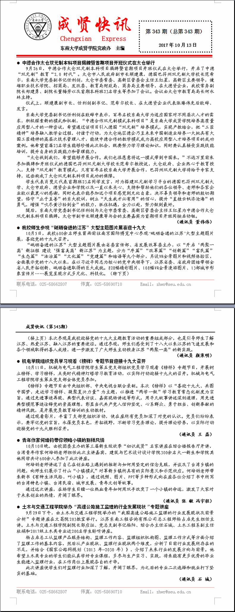 成贤快讯 第343期(总第343期) 2017年10月13日