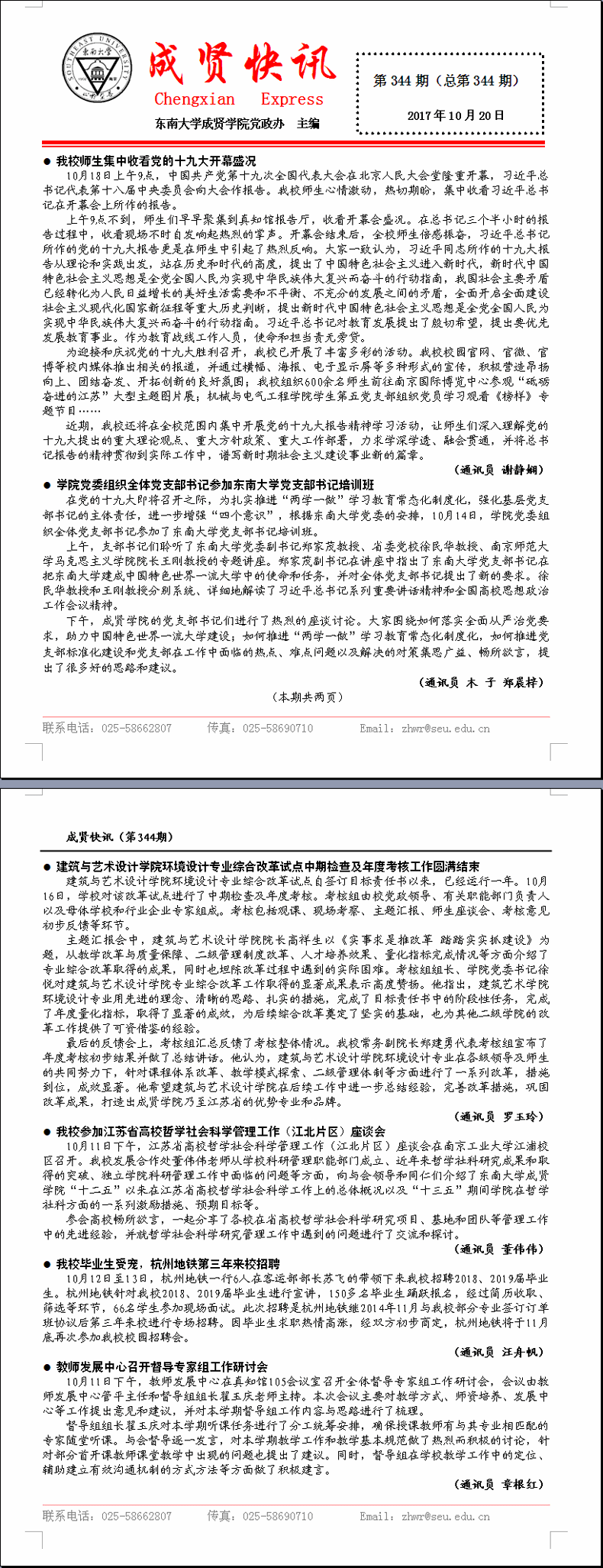 成贤快讯 第344期(总第344期) 2017年10月20日