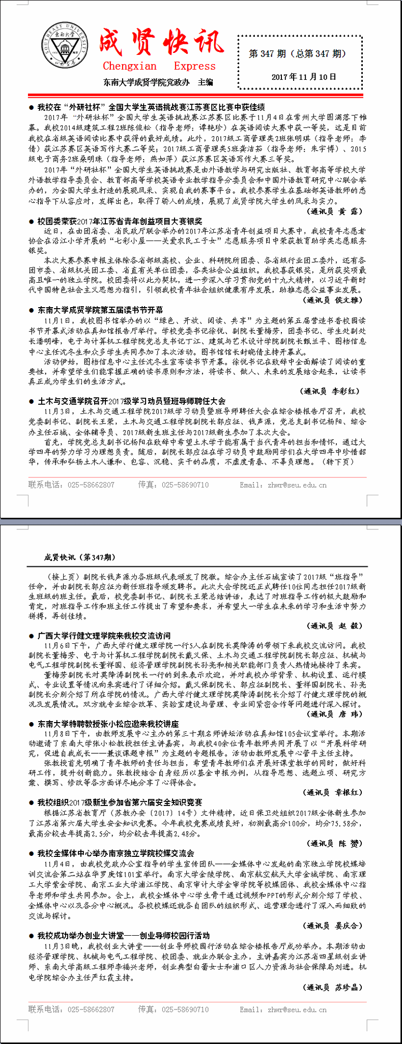 成贤快讯 第347期(总第347期) 2017年11月10日