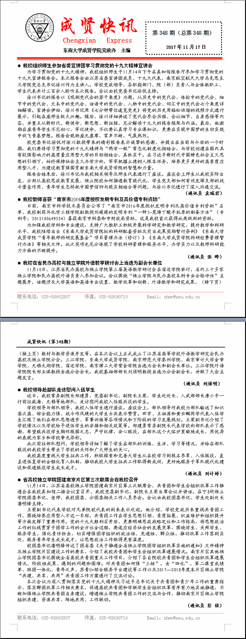 成贤快讯 第348期(总第348期) 2017年11月17日