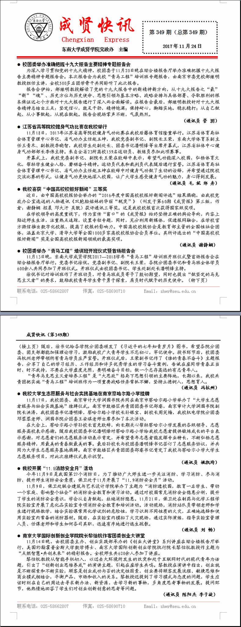 成贤快讯 第349期(总第349期) 2017年11月24日