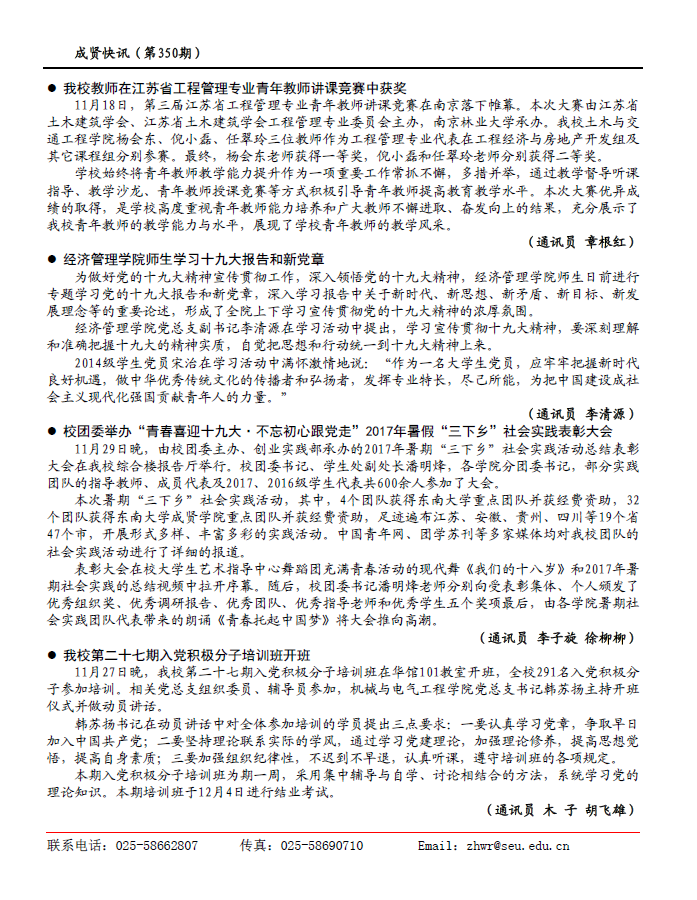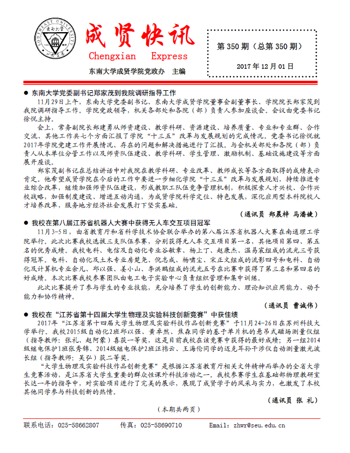 成贤快讯 第350期(总第350期) 2017年12月01日