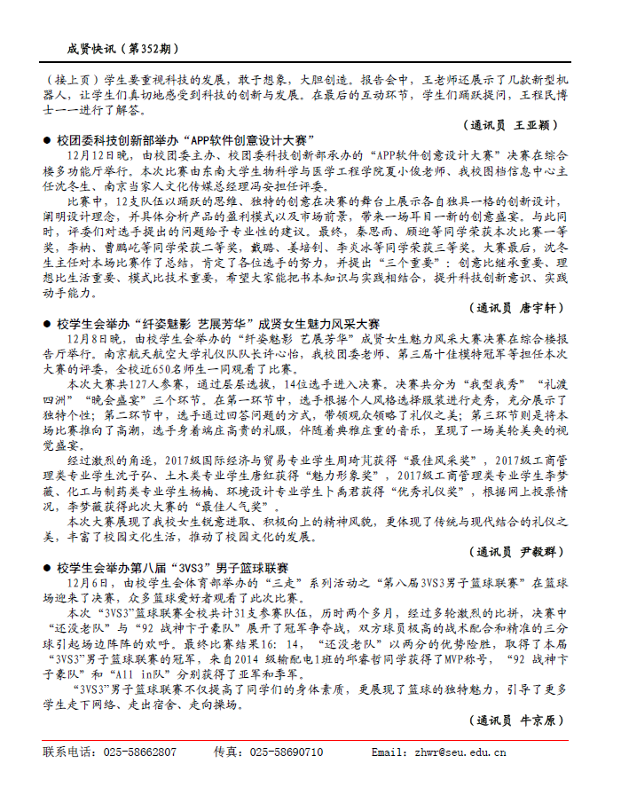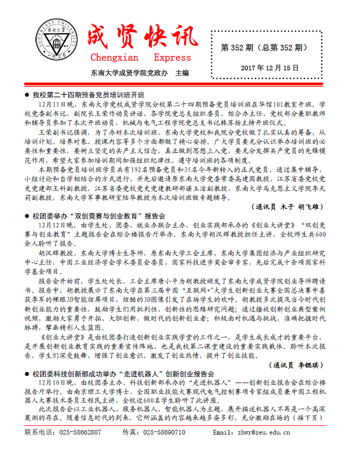 成贤快讯 第352期(总第352期) 2017年12月15日