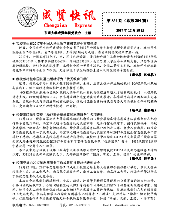 成贤快讯 第354期(总第354期) 2017年12月29日