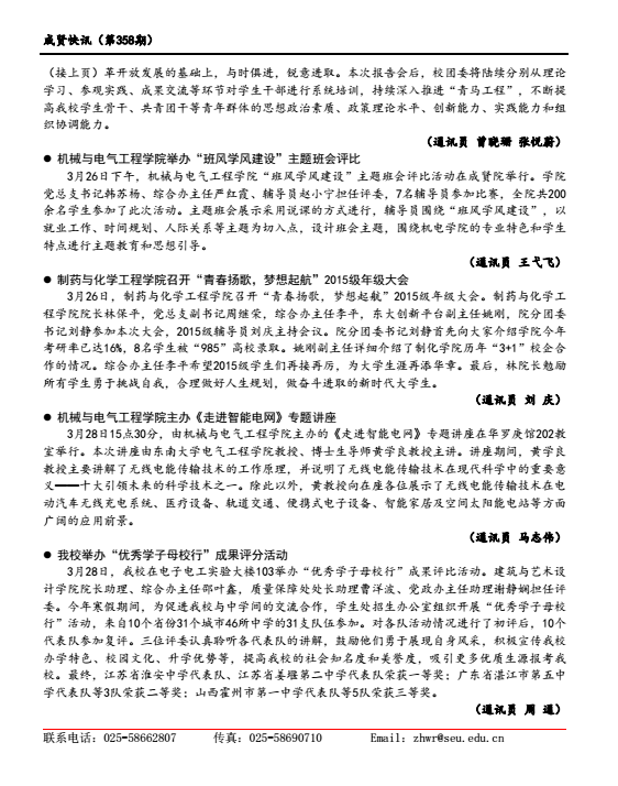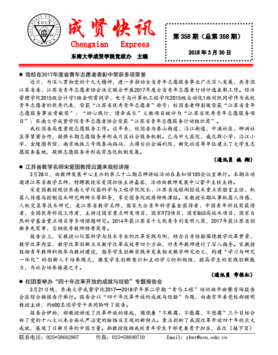 成贤快讯 第358期(总第358期) 2018年03月30日