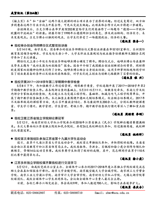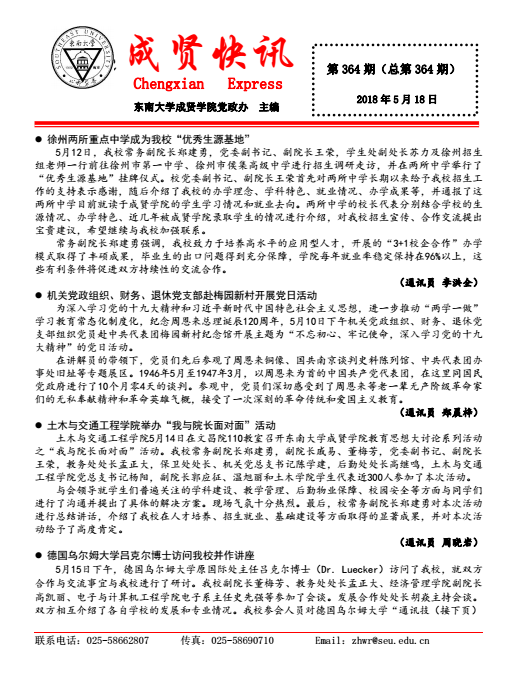 成贤快讯 第364期(总第364期) 2018年05月18日