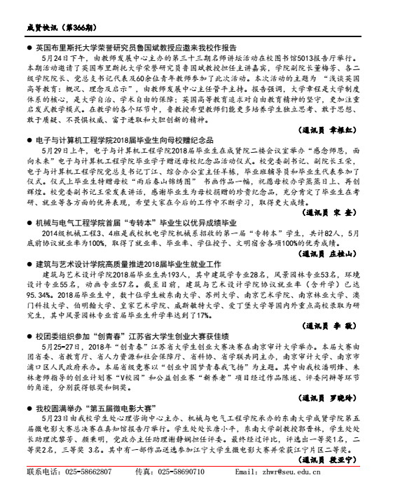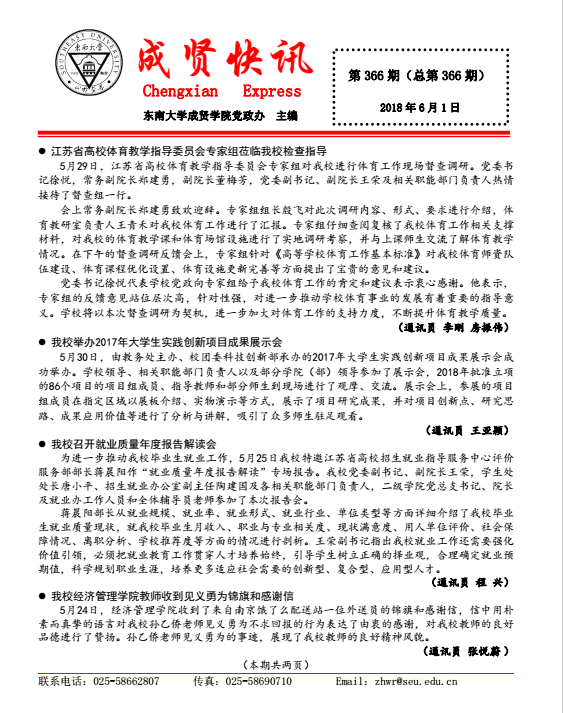 成贤快讯 第366期(总第366期) 2018年06月01日