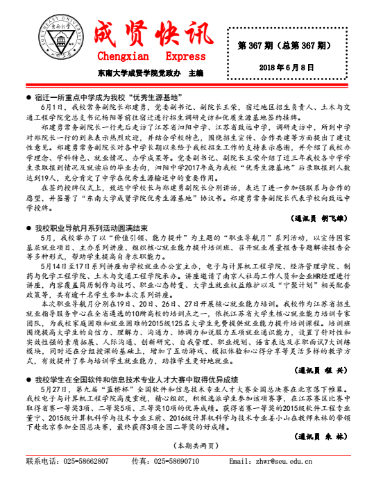成贤快讯 第367期(总第367期) 2018年06月08日