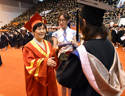 毕业典礼开始前,由毕业生代表深情演唱的《同桌的你》《祝你一路顺风》《放心去飞》等歌曲,表达了对母校的离别不舍、对同学的深情留恋和对毕业生的衷心祝福。