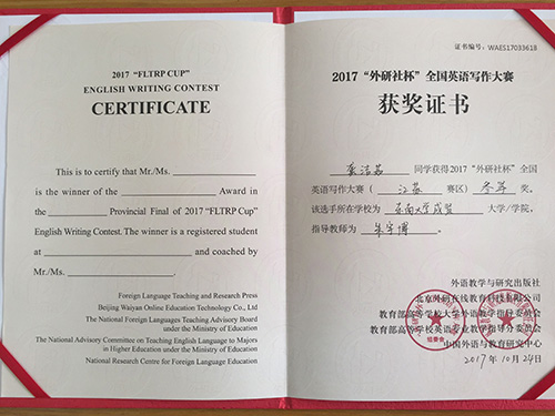 获奖证书