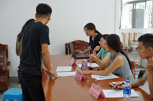 校党委副书记、副院长王荣,党政办主任周伟荣了解报到情况
