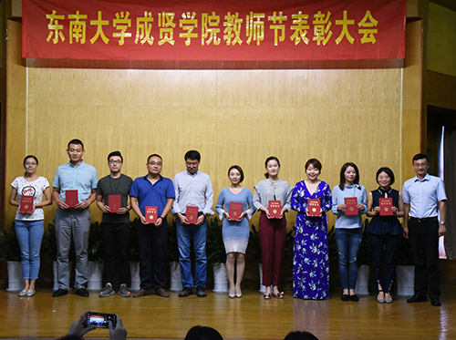 学生代表2016级电子科学与技术专业吉志彪同学代表全校同学向老师们致以最衷心的感谢、最崇高的敬意和最真诚的祝福,并呼吁全校学生传承“止于至善”优良学风,用自己的行动证明大学青春无悔,在老师指引下创造属于成贤与自己的光明未来。