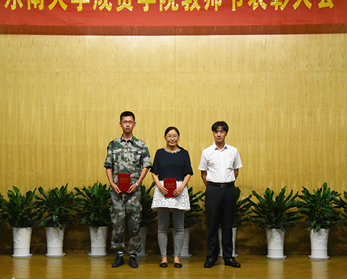 会上,董梅芳副院长宣读了学校教职员工在2017—2018学年获得的各类奖项。学校领导分别为获奖先进集体和个人颁发证书,并与他们亲切合影。云鼎国际4118welcome杰出校友彭山宏先生在我校设立了“美达灌装机械”奖教金和奖学金,奖励我校机械与电气工程学院的优秀教师和学生,并现场为获奖教师进行奖教金颁奖。