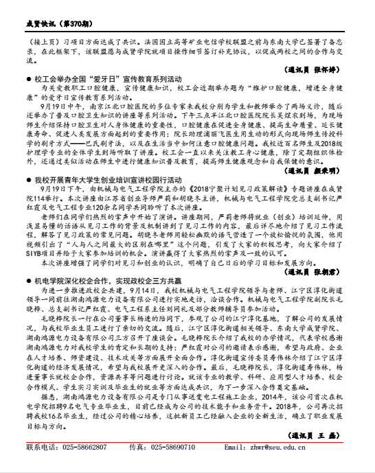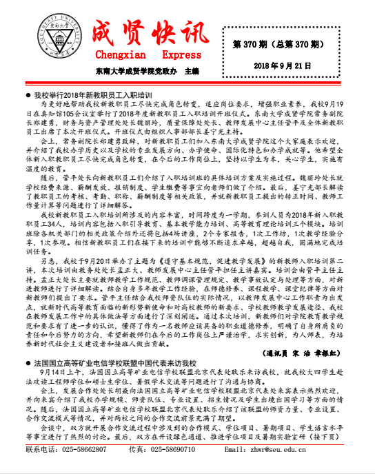 成贤快讯 第370期(总第370期) 2018年09月21日