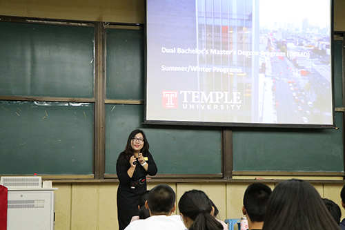 10月15日下午,在我院华罗庚馆101举办的美国天普大学学生项目讲座圆满结束。美国天普大学国际处亚洲项目经理周怡主讲,三百余名学生参加了此次讲座。