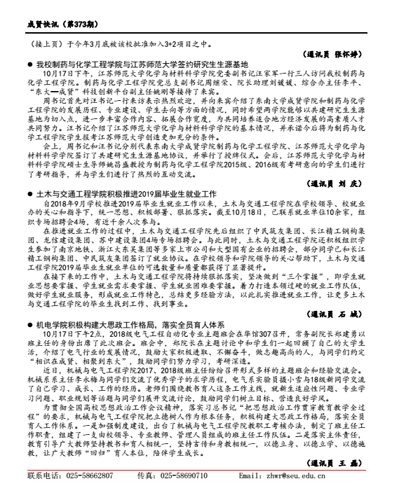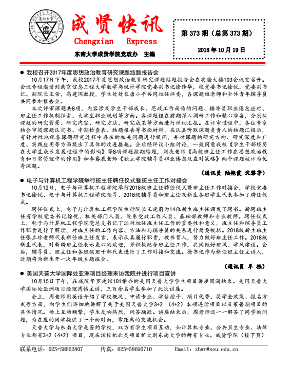 成贤快讯 第373期(总第373期) 2018年10月19日