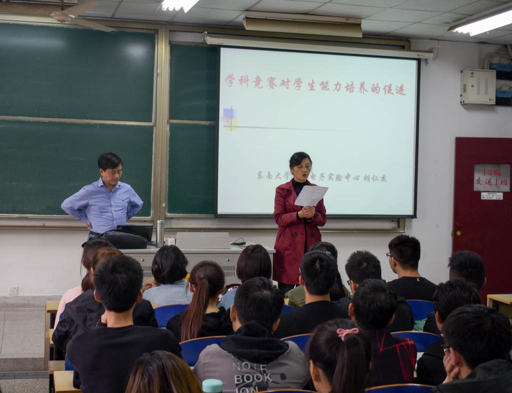 胡仁杰教授是国家级实验室教学示范中心联席会电子组长,中国电工技术学会电气工程教育专委会主任委员,全国大学生电子设计竞赛专家组责任专家,江苏省大学生电子设计大赛、全国大学生模拟电子系统设计邀请赛秘书长兼专家组长,全国大学生FPGA创新设计邀请赛、全国电工电子实验基础课程实验案例设计竞赛秘书长。胡教授有着丰富的电子设计大赛的经验,本次讲座胡教授也是针对我院即将迎来的江苏省大学生机器人大赛做赛前动员和指导。