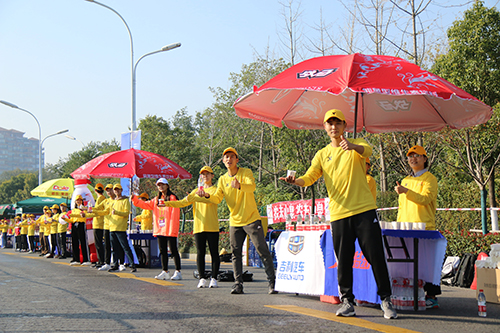 比赛当天凌晨4点,我校志愿者精神抖擞、整装待发,共同乘车前往位于紫金山麓、玄武湖畔的志愿服务地。在20公里处的补给点,我校志愿者们早已做好准备,为通过的运动员及时送上补给用品并加油助威,使运动员充分享受马拉松比赛的快乐和志愿者的热情。赛后,志愿者们主动整理物资与清理垃圾。志愿者们凭借出色的表现赢得了赛事主办方和运动员的高度认可,在感受到运动员永不言弃精神的同时,充分展现了东大成贤学子“奉献,友爱,互助,进步”的志愿精神。