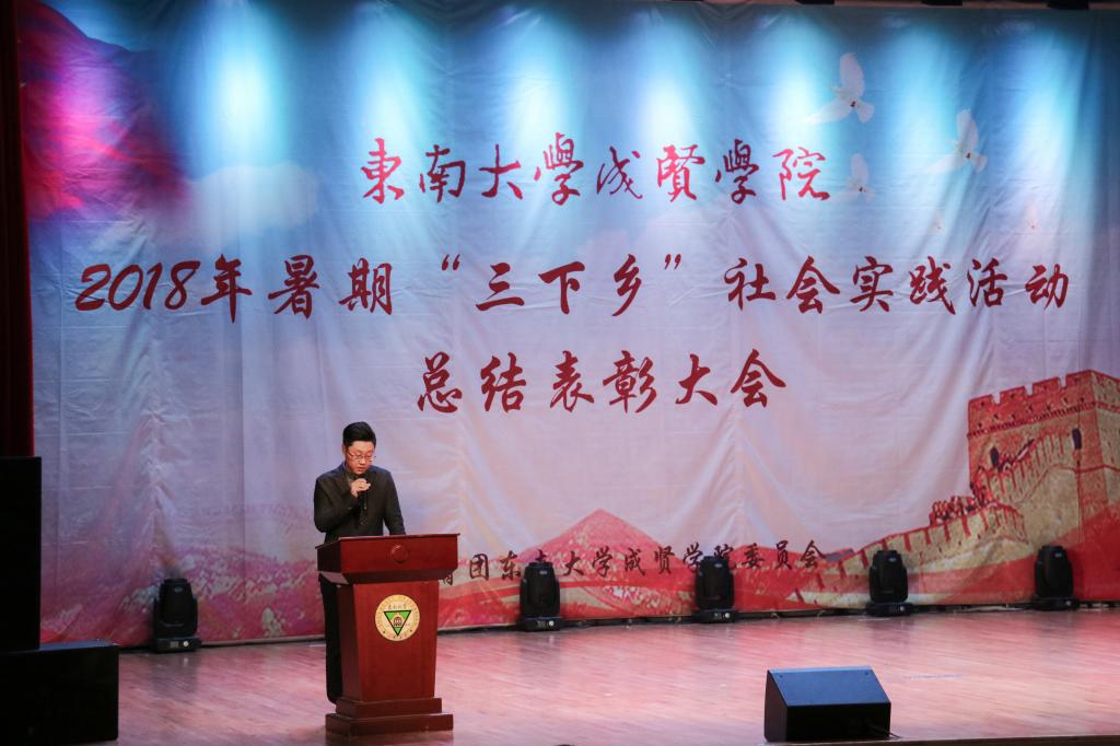 大会以青春活力的现代歌舞《小梦想大梦想》和2018年暑期社会实践总结视频拉开序幕。首先,校团委书记潘明烽老师宣读了《学院2018年暑期“三下乡”社会实践活动表彰决定》;随后,学生处处长唐小平老师颁发了优秀指导老师和优秀组织奖,学生处副处长苏力老师颁发了优秀个人奖、优秀团队奖;颁奖过后,优秀指导老师代表建筑与艺术学院孙浩、优秀个人代表机械与电气工程学院郑子吉同学分别做了精彩发言,讲述了暑期社会实践中的经验与体悟;优秀团队代表“致恒”团队进行了生动丰富的团队展示和现场访谈,讲述了他们助力云南楚雄南华县的扶贫过程。最后,学生处处长唐小平老师为本次大会作总结讲话,希望更多的老师能加强专业指导,更多的同学将所学专业应用到实践锻炼中,服务地方,受教育、长才干、做贡献。