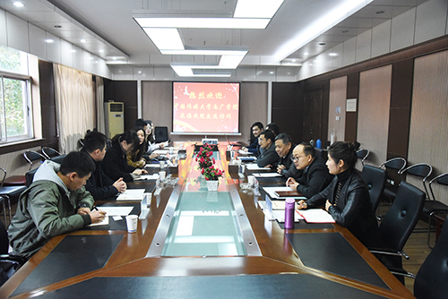 王荣副书记首先对中国传媒大学南广学院一行的到来表示欢迎,并介绍了我校基本办学情况、组织架构、学科建设、人才培养等方面的工作。