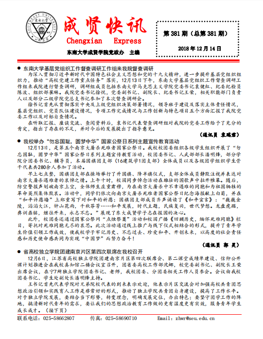 成贤快讯 第381期(总第381期) 2018年12月14日