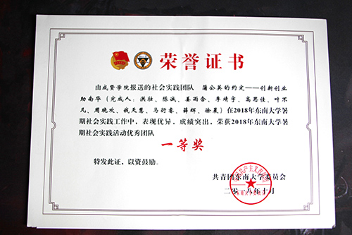 社会暑期“三下乡”实践活动“优秀团队”奖状
