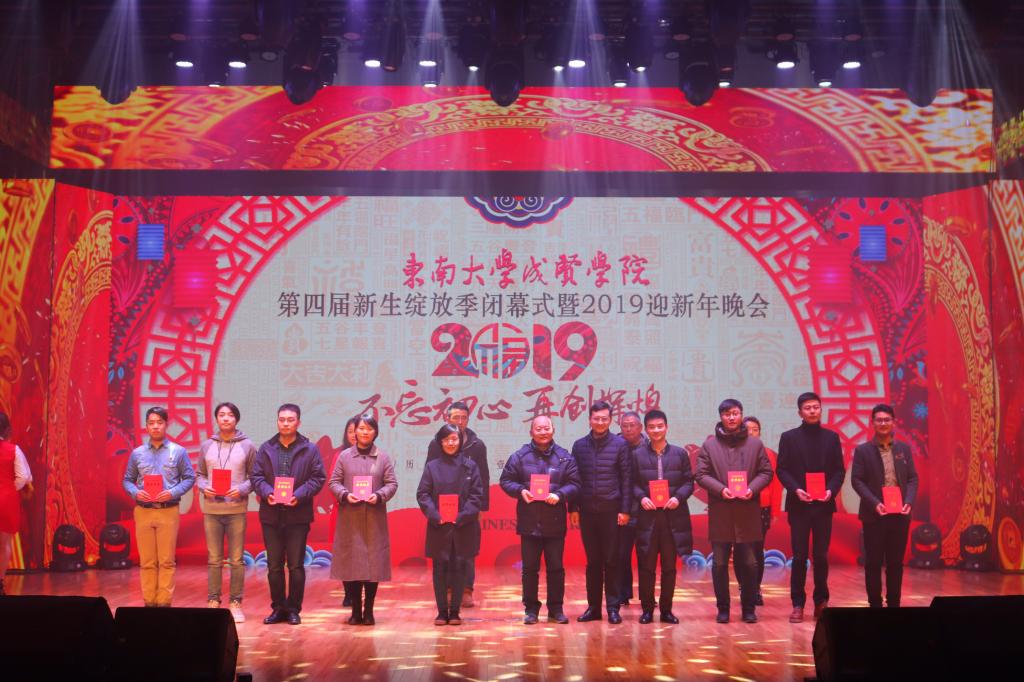 党委书记徐悦作新年致辞,他首先总结了我校一年的工作内容和取得的成绩,介绍了2019年学校重点工作,并对全校师生表达了祝福寄语。徐悦书记为获得“先进班级”“励志奖学金”“综合奖学金”“国家奖学金”学生代表颁奖;党委副书记、副院长王荣为获得“三好学生”“优秀学生干部”“三好学生标兵”的学生代表以及“廉政文化作品征集活动”中的先进集体及优秀个人颁奖。