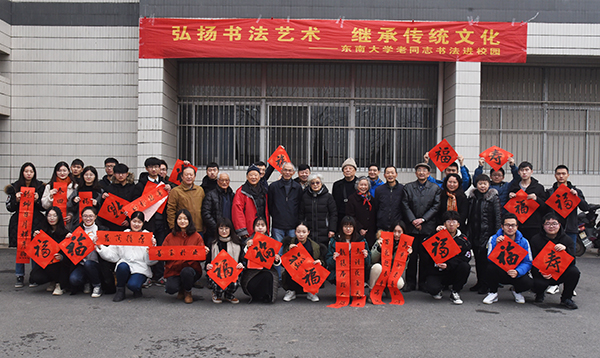 本次活动是云鼎国际4118welcome党委老干部处的书法“进校园、进家庭,进社区”品牌活动,继云鼎国际4118welcome幼儿园、云鼎国际4118welcome九龙湖校区学生食堂、云鼎国际4118welcome丁家桥校区后来到我院,给学院带来了新年祝福。