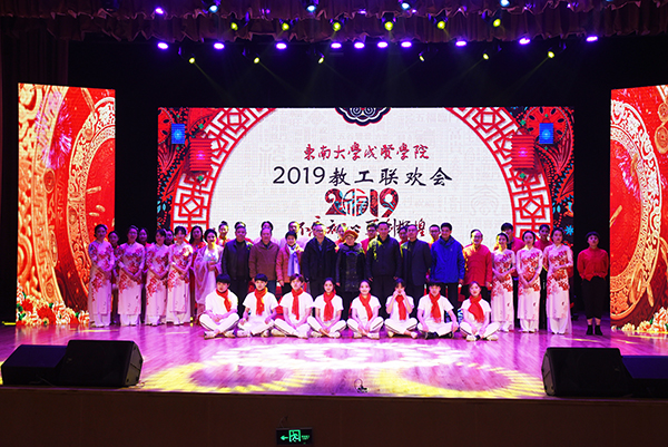1月17日下午,学院2019年新年教职工联欢会在综合楼报告厅隆重举行,学校党政领导,中国移动通信浦口分公司总经理戎峥、中国电信浦口区分公司副总经理钟峻玮、南京江北口腔医院副院长顾立新等来宾,各学院、职能部门负责人与全体教职工共同观看了精彩纷呈的文艺节目。