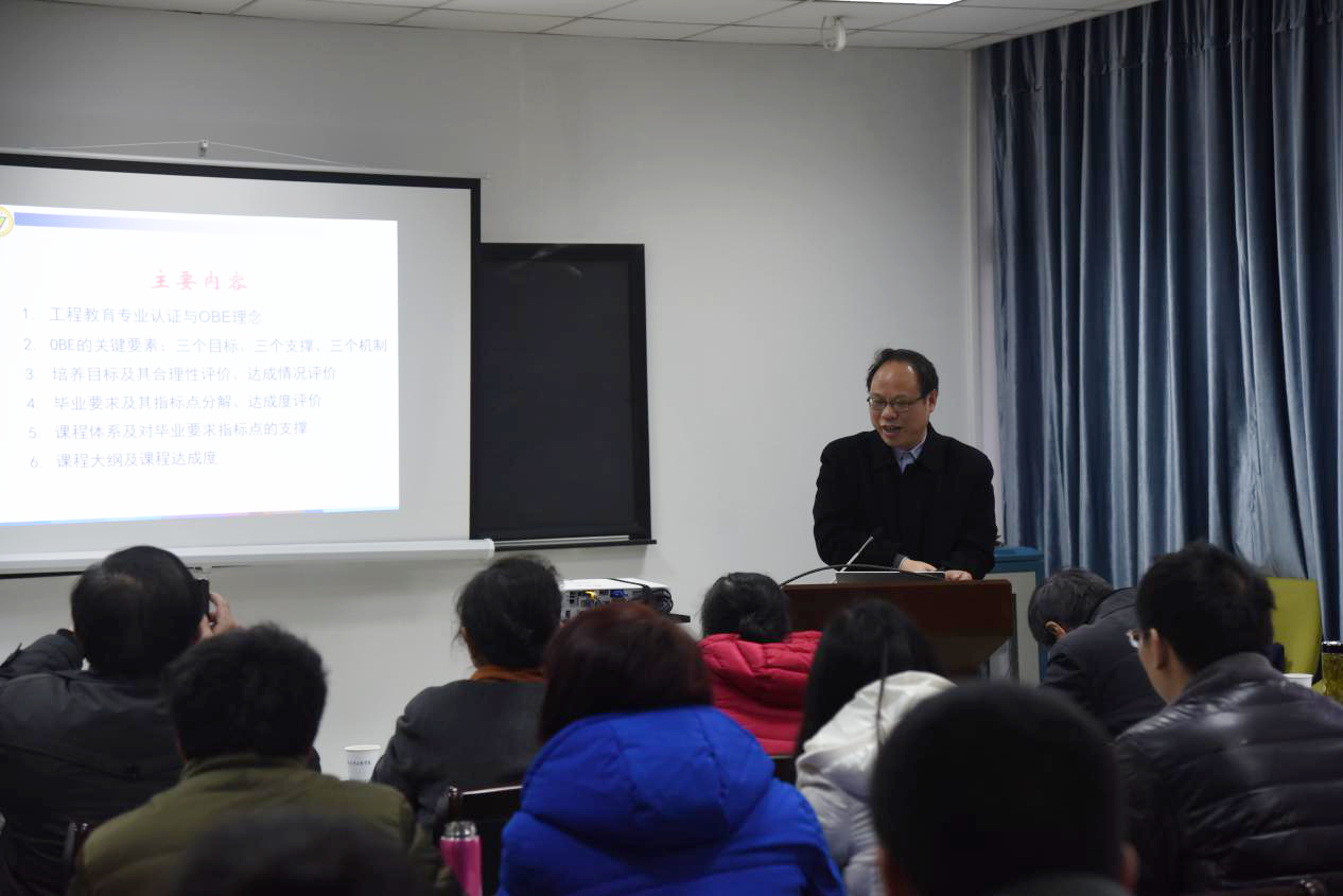 2月27日下午,中国工程教育认证专家、云鼎国际4118welcome机械工程学院贾民平教授应我校教务处邀请,为全校教师作了题为《基于OBE理念和工程教育认证视角谈人才培养方案修订》的主题报告。