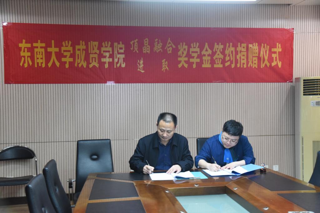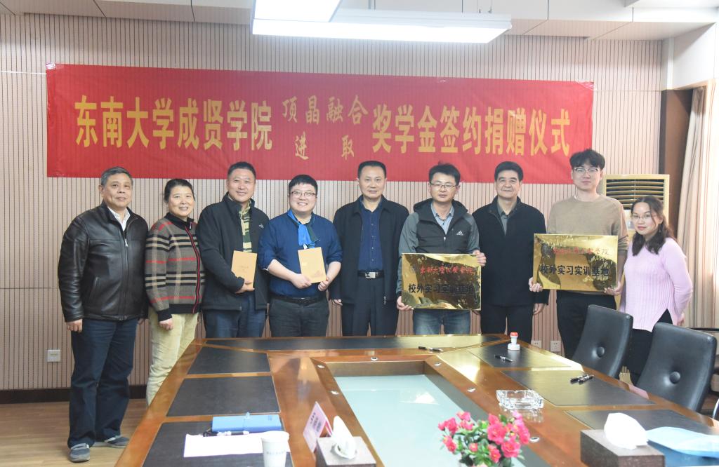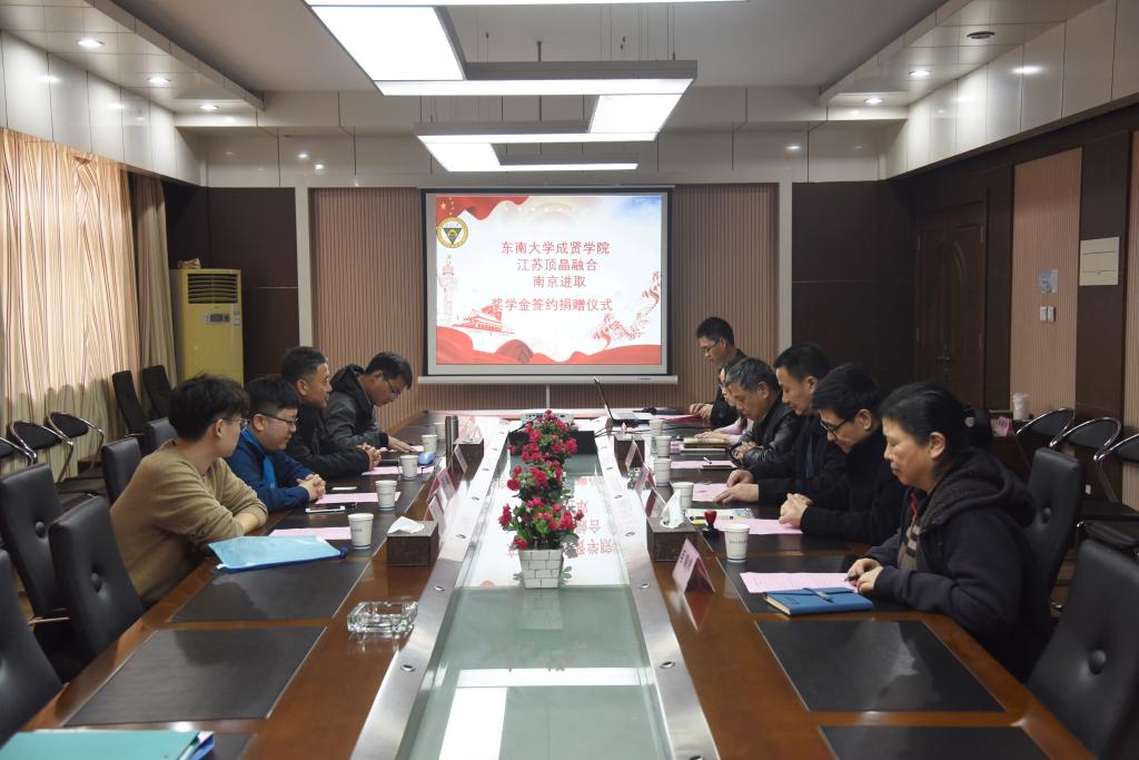 会上,江苏顶晶融合电力工程有限公司总经理王益先生从个人创业经历出发,介绍了企业的发展历程,表示设立奖学金是为了帮助学校更好的培养人才,回馈社会,表达个人的教育情怀。南京进取电力技术有限公司技术总监朱葛峰先生从多年来校企合作的经历出发,介绍了企业的发展和我校优秀毕业生的职业成长路径,认为成贤学子素质优良、专业过硬,企业愿意设立专项奖学金、提供实习实践机会,帮助学生更快地成长。