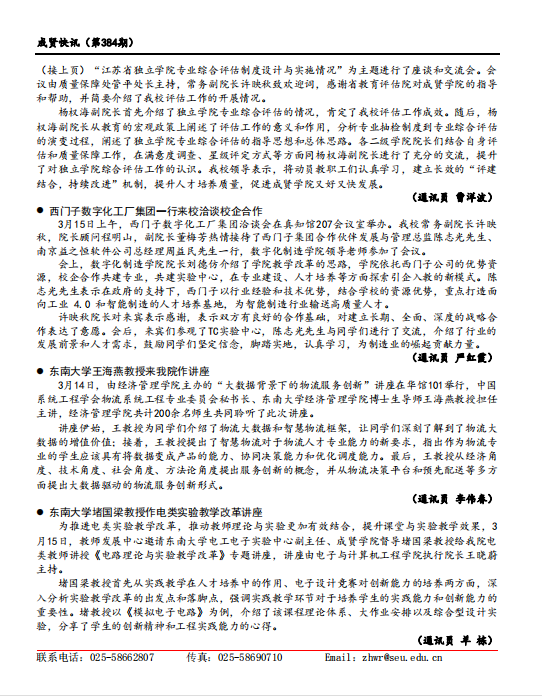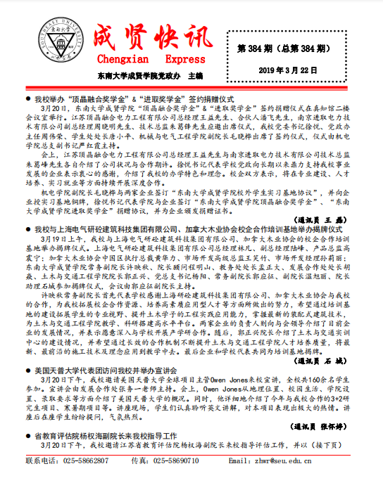 成贤快讯 第384期(总第384期) 2019年03月22日