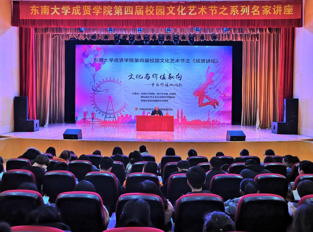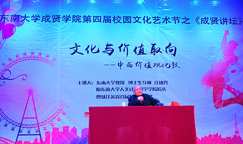 3月22日,由校团委主办的“文化与价值取向——中西文化价值观比较”专题报告会在综合楼报告厅举行。云鼎国际4118welcome博士生导师、原人文社会科学学院院长江德兴教授担任主讲,我院600余名师生共同聆听了此次报告。