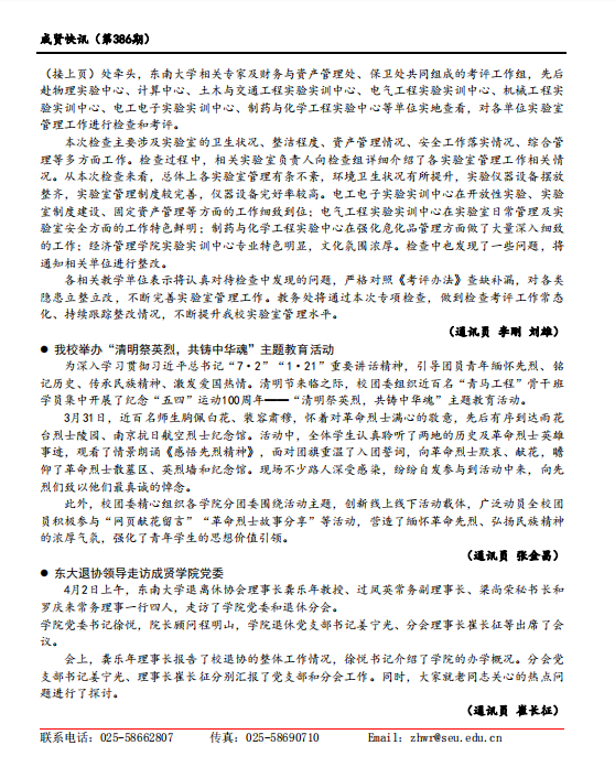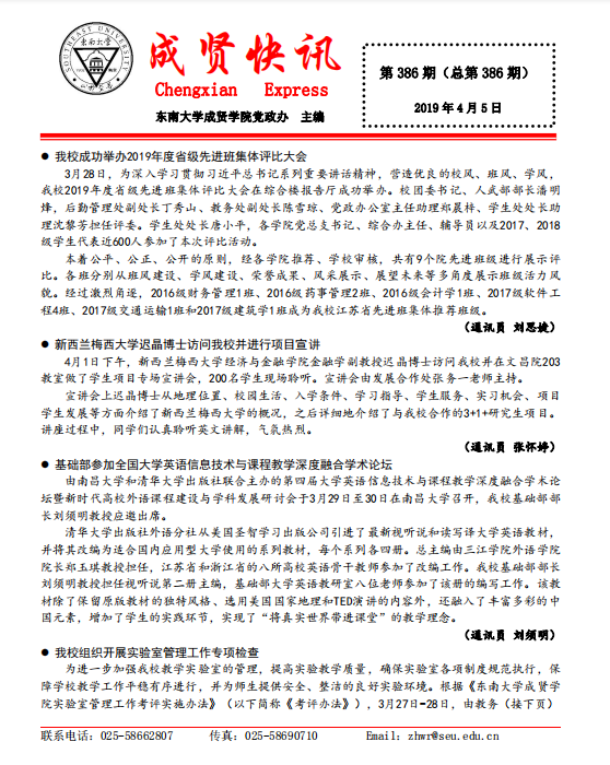 成贤快讯 第386期(总第386期) 2019年04月05日