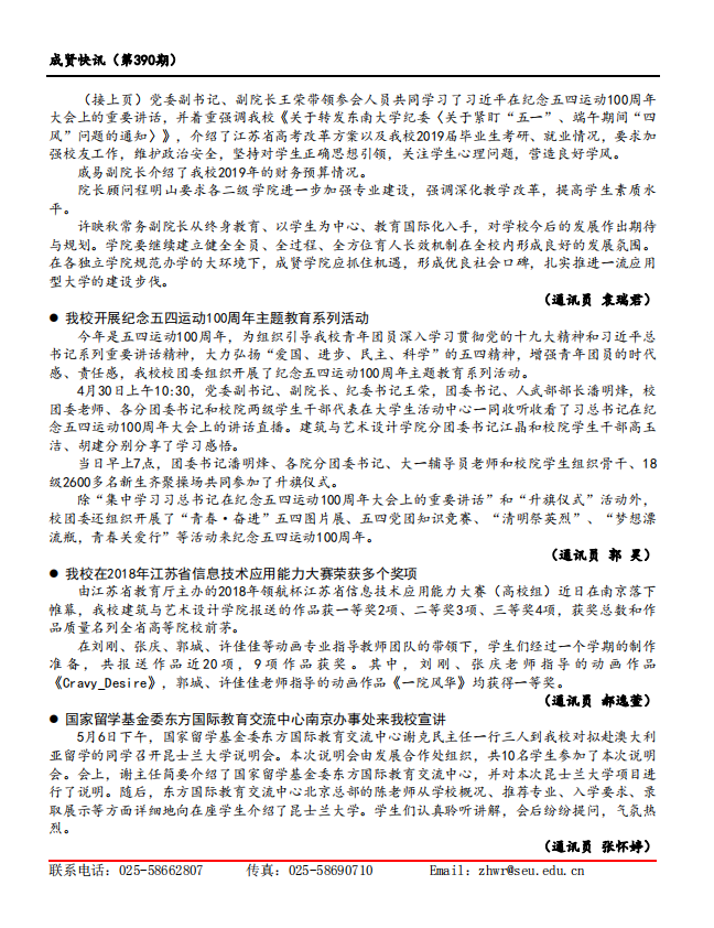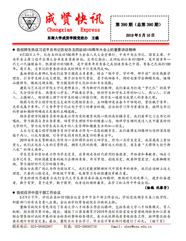 成贤快讯 第390期(总第390期) 2019年05月10日