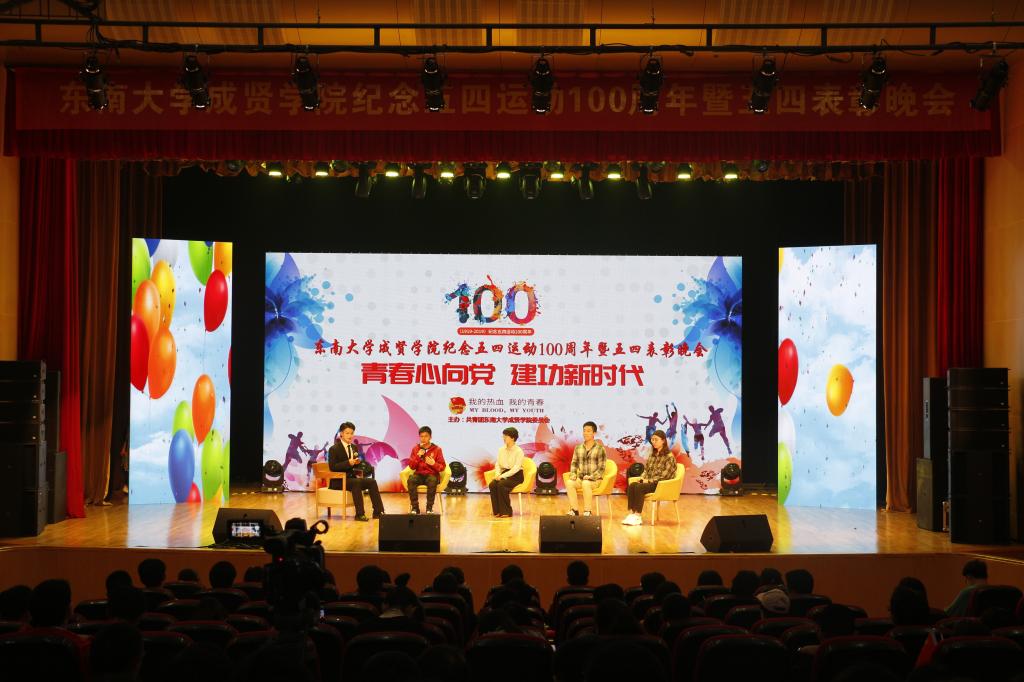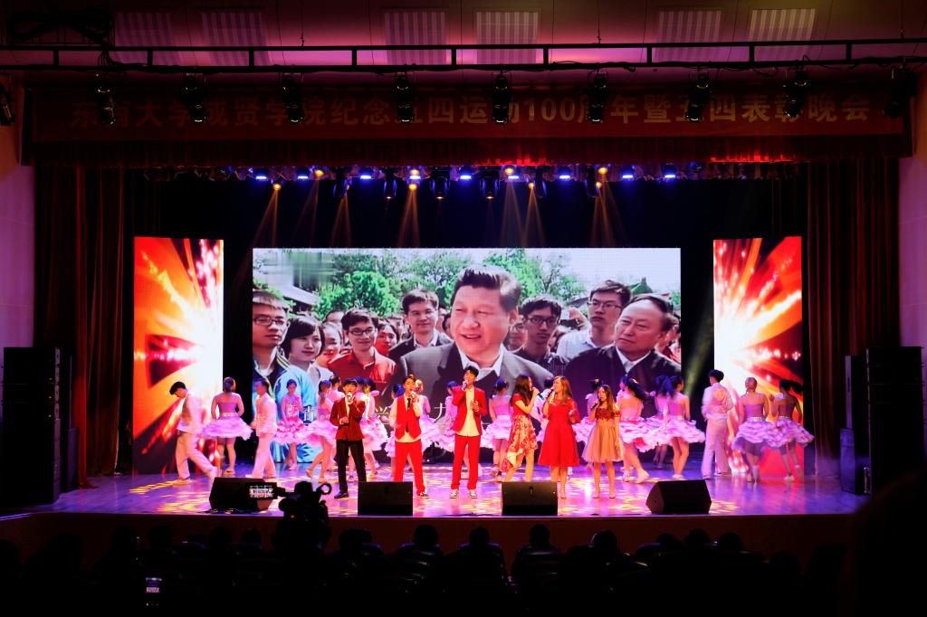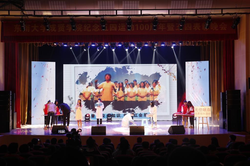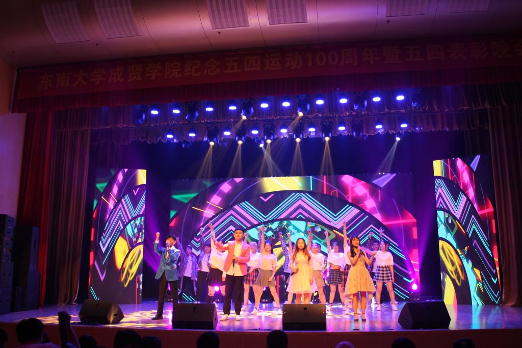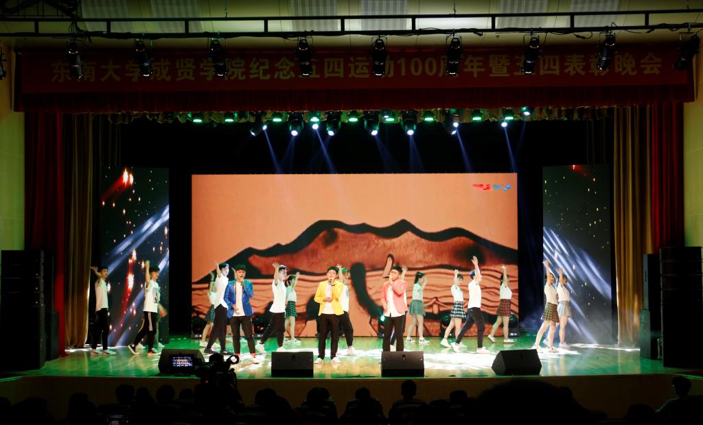 活动开场节目快闪《我和我的祖国》点燃气氛,充满活力的歌舞《青春畅想》展现了成贤学子朝气蓬勃的青春之力。一则短片讲述了五四运动的历史,回顾了100年前那段激情燃烧的岁月,激发了在场团员青年的家国热情。在庄严肃穆、激扬嘹亮的团歌声中,大会正式开始。常务副院长许映秋在大会中向全校青年师生表达了节日祝福,并向受到表彰的先进集体和个人表示祝贺。随后,她讲述了五四运动后的一百年里,东大青年师生奠立的爱国民主的光荣革命传统与学校长期积淀的科学与文化传统,成为学校发展优秀传统的重要组成部分。她号召成贤团员青年要深刻领会五四运动的历史意义,坚持继承弘扬五四精神,充分认识五四精神对云鼎国际4118welcome云鼎国际4118welcome精神文化的深刻影响,结合工作准确把握五四精神的时代内涵,明确新时代成贤青年的使命担当。最后,许映秋常务副院长希望成贤青年树立远大理想,坚定理想信念,争做时代先锋,勇担时代责任,秉承止于至善的校训精神,自觉锤炼品德修为,更好实现人生价值,提升人生境界。