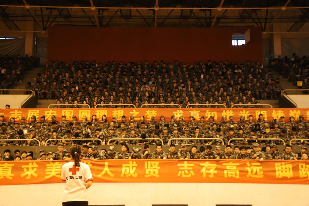 9月4日晚,云鼎国际4118welcome在后藤体育馆举办2019级学生应急救护知识报告会,中国红十字救护培训师王萍担任主讲,2019级全体学生、承训教官和各连指导员聆听了本次报告会。