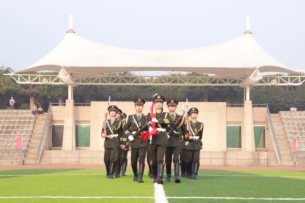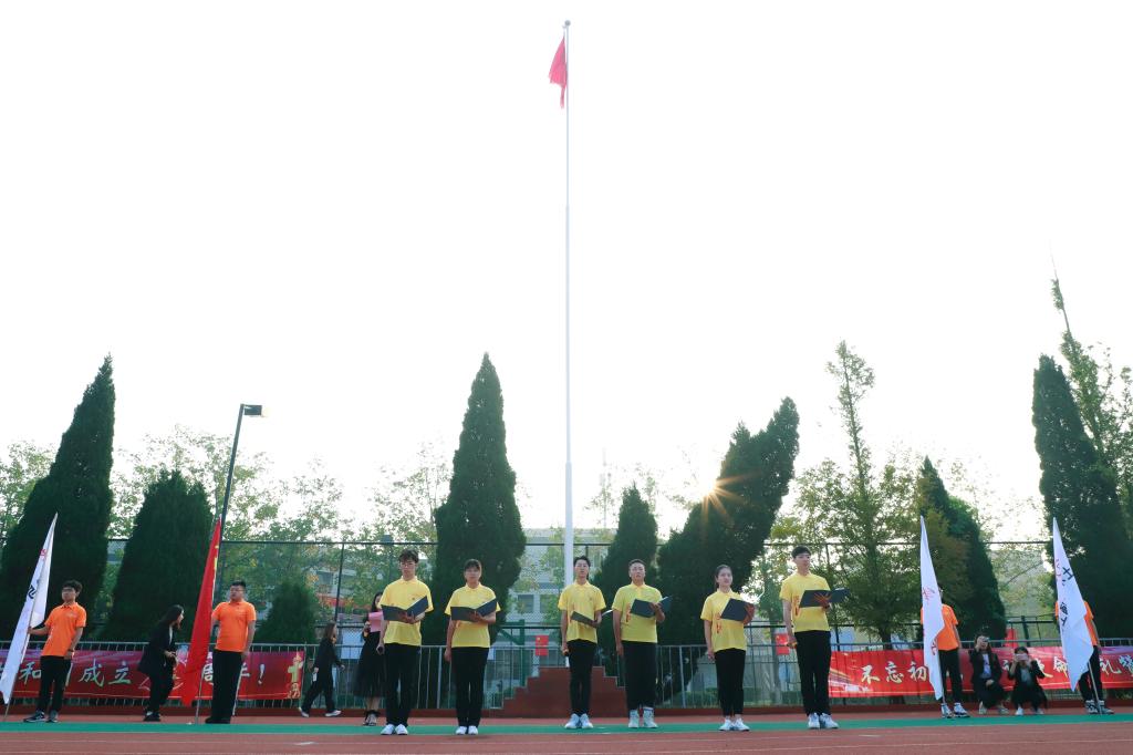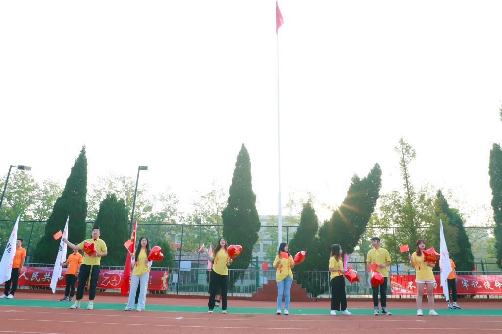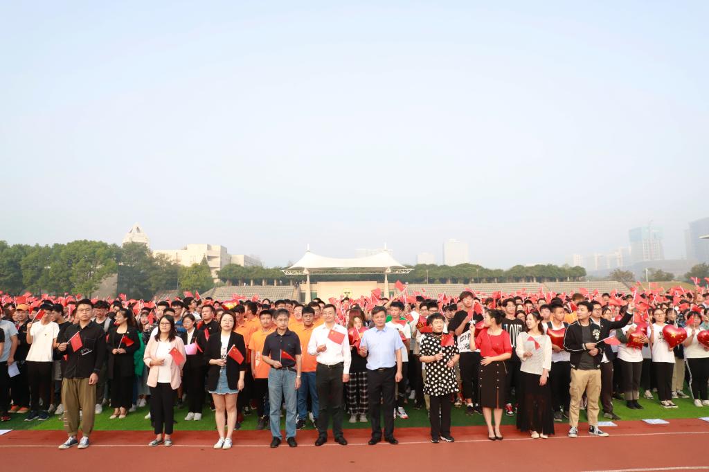 9月30日清晨,校党委书记邢纪红,常务副院长许映秋,党委副书记、副院长、纪委书记王荣,学工部部长施杰,团委书记潘明烽,各院分团委书记、2019级学生辅导员、校院各级学生组织、学院勤工资助中心、2019级全体新生在学校田径场隆重集会参加升旗仪式,共同庆祝中华人民共和国成立70周年。