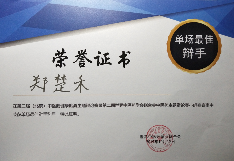 “单场最佳辩手”证书