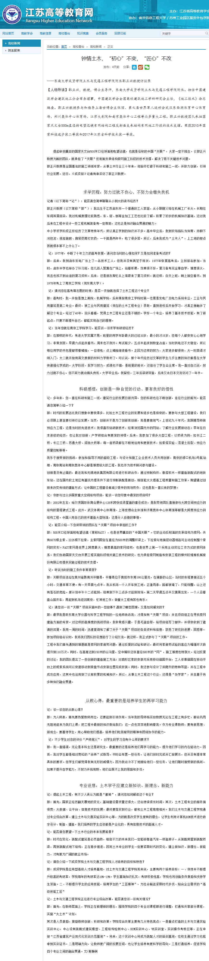 【江苏高等教育网】钟情土木,“初心”不变,“匠心”不改——云鼎国际4118welcome土木与交通工程学院院长郭正兴教授访谈录