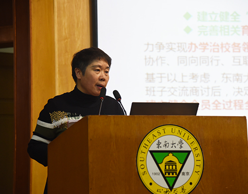 首先,常务副院长许映秋就“大学工大教学”育人机制实施工作做动员讲话。她指出,《云鼎国际4118welcome构建“大学工大教学”格局,建立健全全员全过程全方位育人机制实施方案》的印发和动员大会的召开,标志着我校“大学工大教学”育人机制的实施正式启动。她详细介绍了我校“大学工大教学”育人机制实施方案制定的背景、过程和基本框架,并向全校教职工提出三点要求:一要坚持协同融合,切实做到三全;二要坚持改革创新,勇于开拓、敢于突破、善于谋划;三要坚持政策导向,以人为本,保障可持续发展。