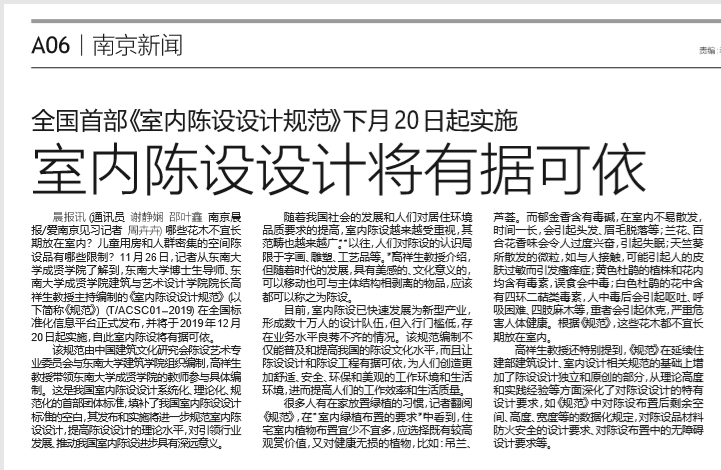 【南京晨报】室内陈设设计将有据可依
