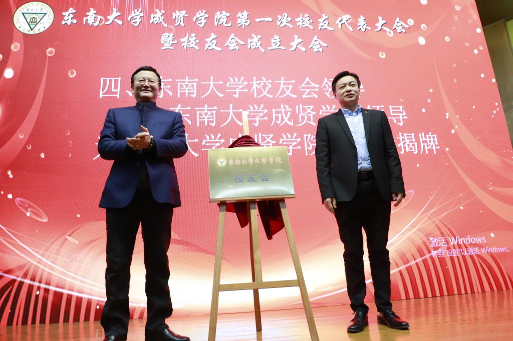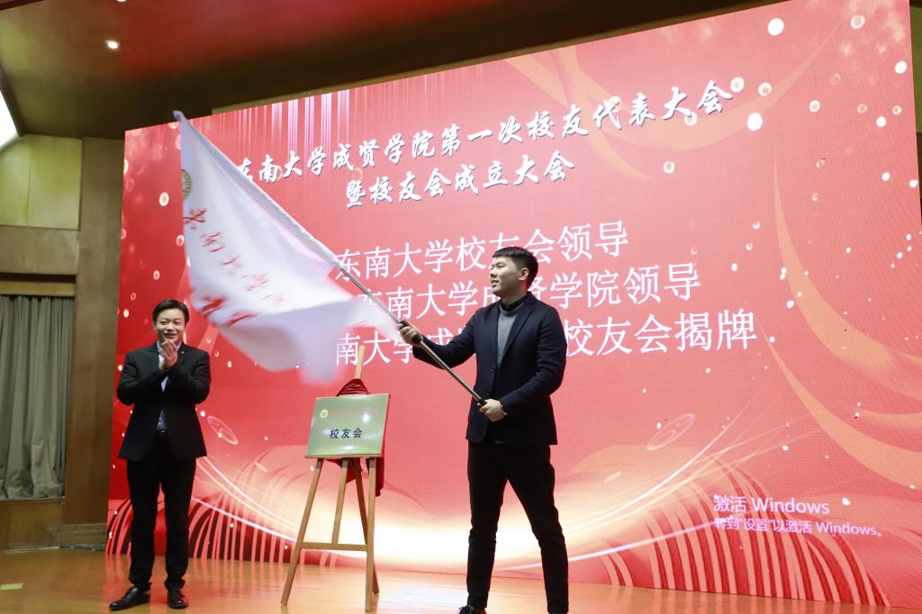 云鼎国际4118welcome校友总会副秘书长曹军、学院党委书记邢纪红为校友会揭牌