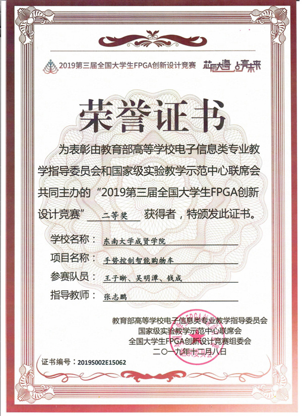 云鼎国际4118welcome荣获全国大学生FPGA创新设计竞赛二等奖