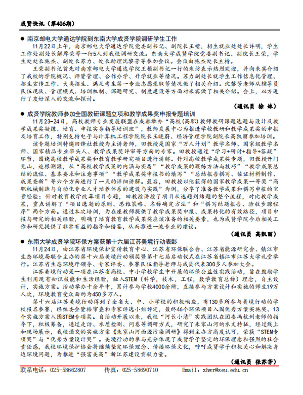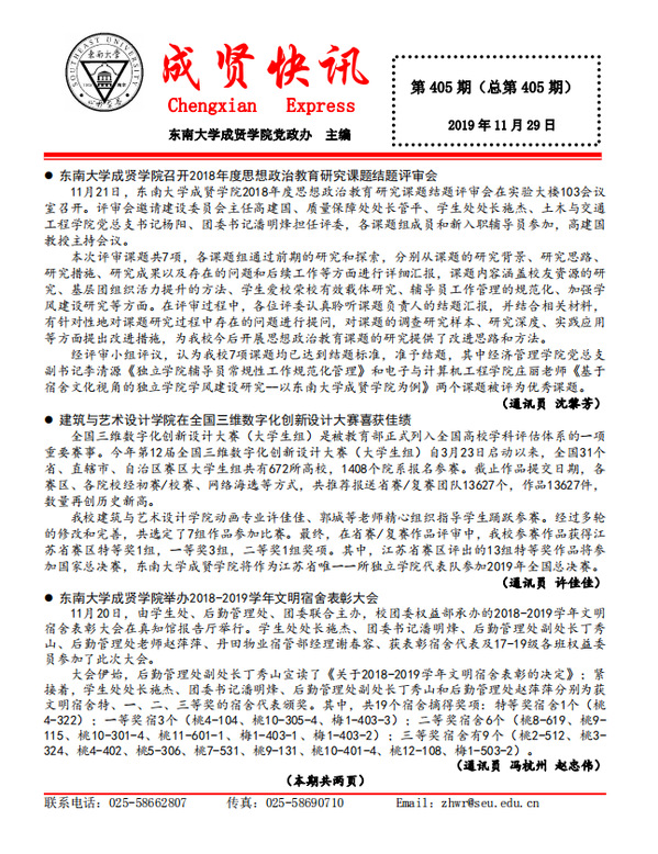 成贤快讯 第405期(总第405期) 2019年11月29日
