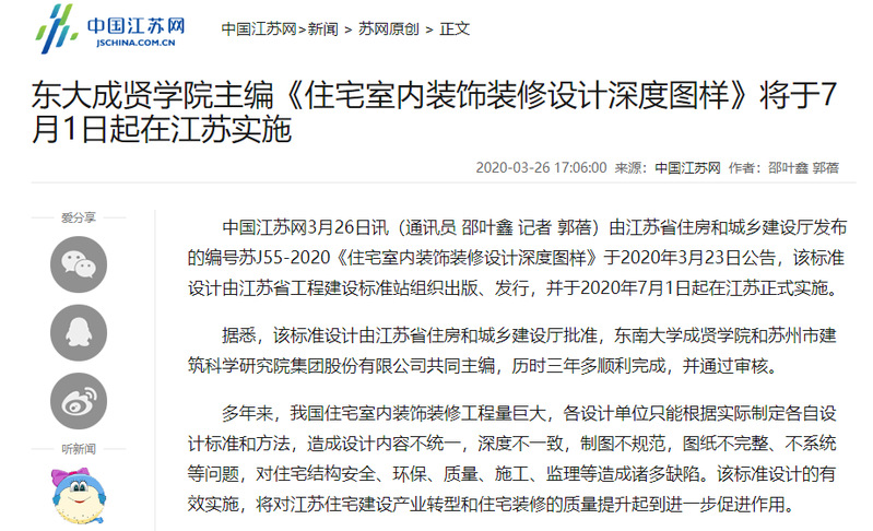 【中国江苏网】东大云鼎国际4118welcome主编《住宅室内装饰装修设计深度图样》将于7月1日起在江苏实施
